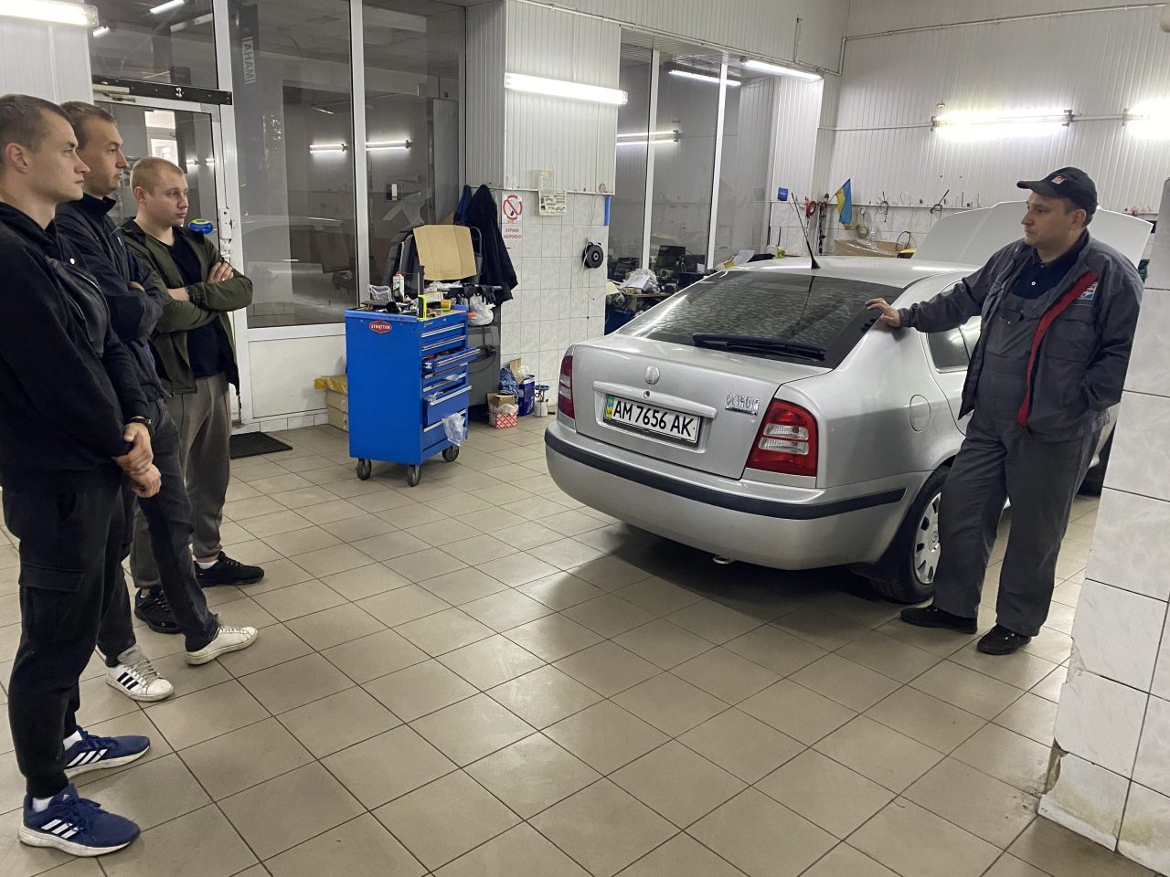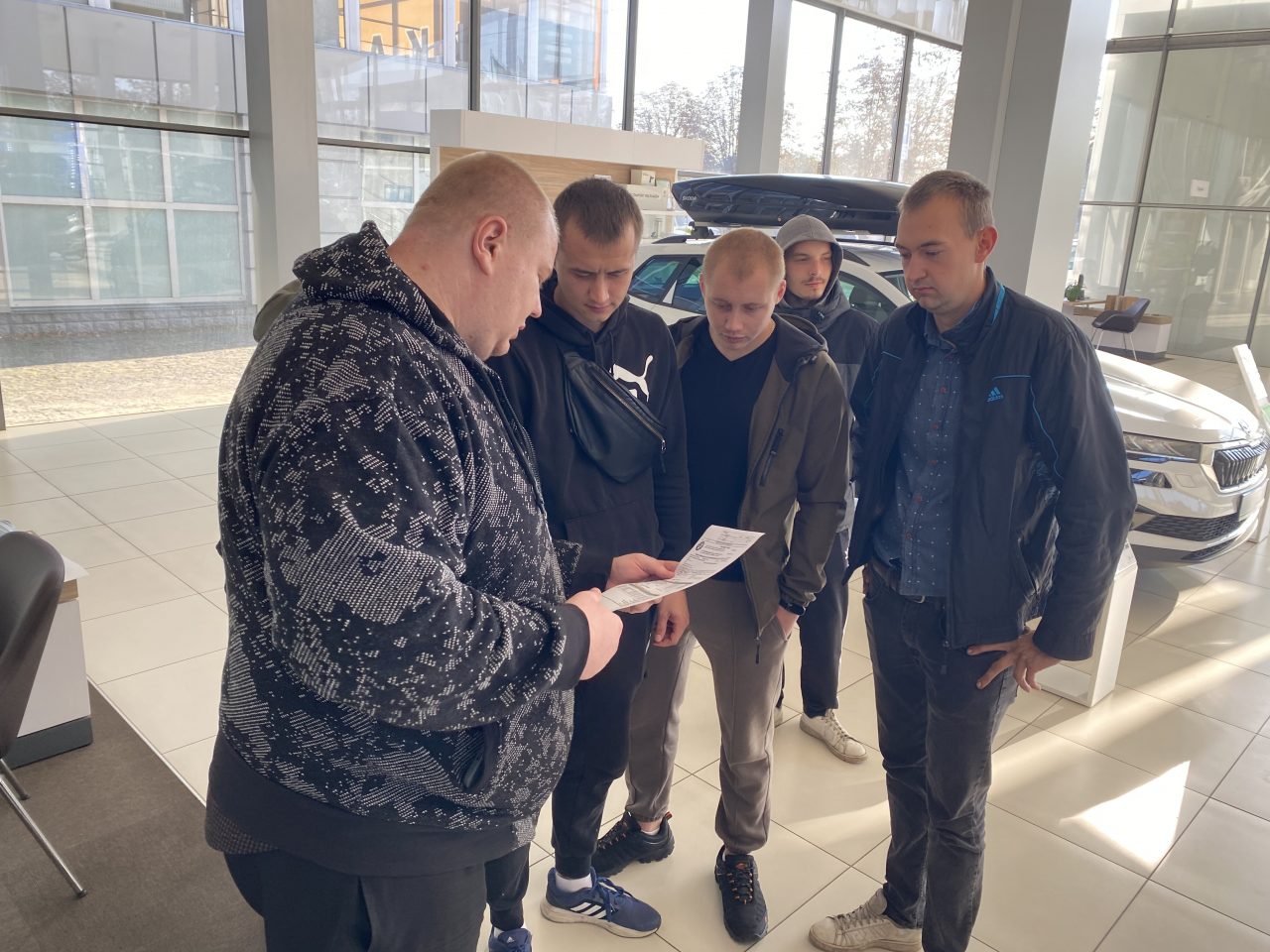 Керівник сервісу Сергій Верзілов організовав для студентів навчальну екскурсію автосервісом. Зустріч почалася в автосалоні, де представлено модельний ряд автомобілів для продажу в нашому регіоні, ознайомилися з вимогами виробника автомобілів Škoda до облаштування автосалону. Далі нас чекало знайомство з виробничими приміщеннями, детально про організацію технічного обслуговання і ремонту автомобілів з використанням сучасного обладнання розповів наш випускник, а зараз досвідчений діагност Леонід Башинський. Також студентів ознайомили з використанням лінії інструментального контроля для контролю за технічним станом автомобіля та пошуку несправностей.