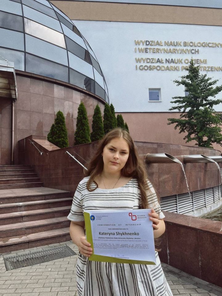 Студентки спеціальності 103 «Науки про Землю» освітньої програми «Управління земельними і водними ресурсами» Житомирської політехніки Катерина Шихненко та Вероніка Сусловець улітку 2025 року взяли участь у Літній школі Університету Миколи Коперніка (м. Торунь, Польща), організованій у межах Toruń Students Summer Program in Natural Sciences.