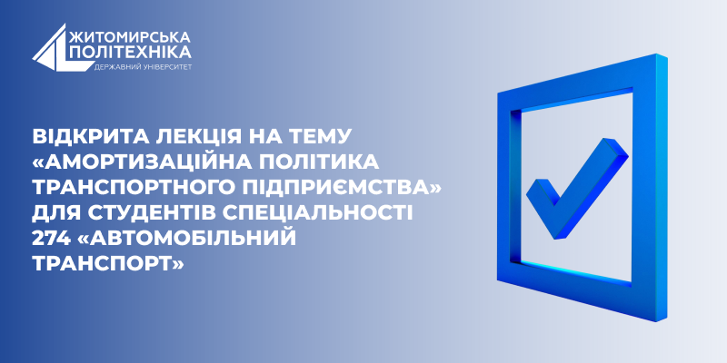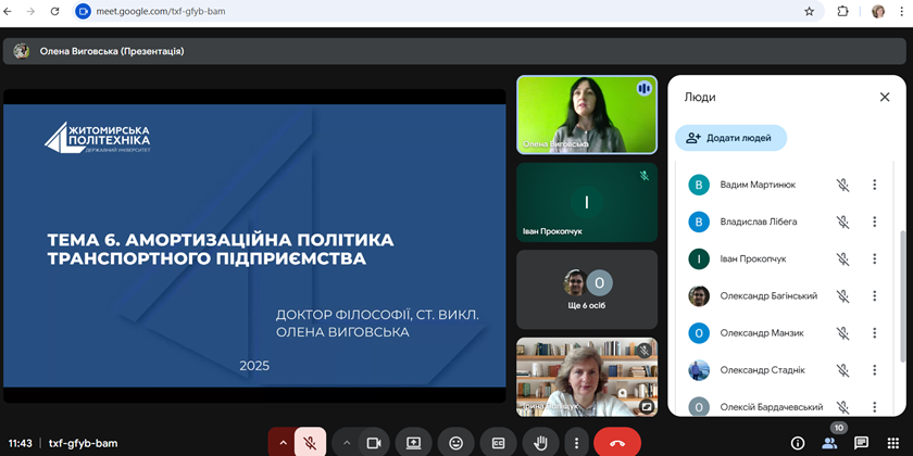 У Державному університеті «Житомирська політехніка» відбулася лекція на тему «Амортизаційна політика транспортного підприємства», яку провела PhD, Олена Виговська для здобувачів вищої освіти освітнього рівня «магістр» спеціальності 274 «Автомобільний транспорт».