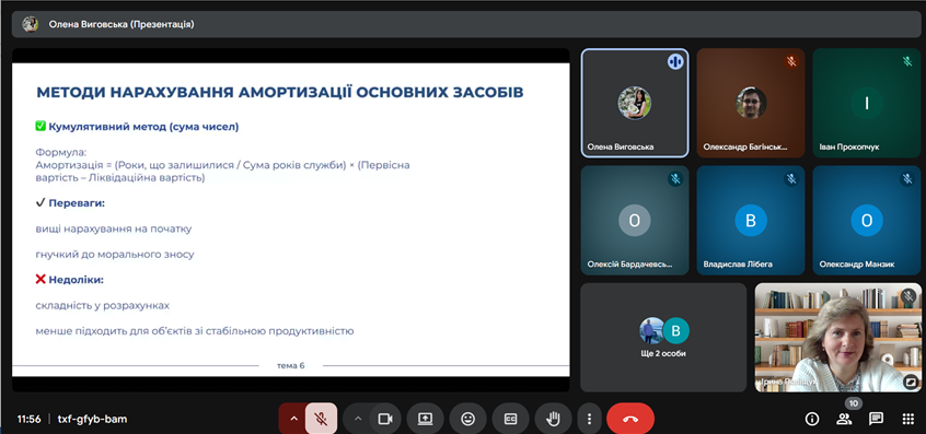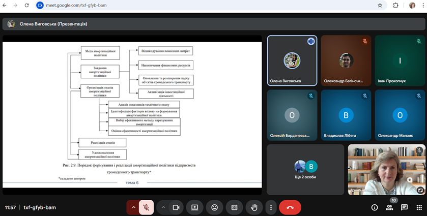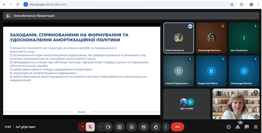 Під час заняття було розглянуто сучасні підходи до формування амортизаційної політики підприємств транспортної галузі, її роль у забезпеченні ефективного функціонування основних засобів та вплив на фінансові результати діяльності.