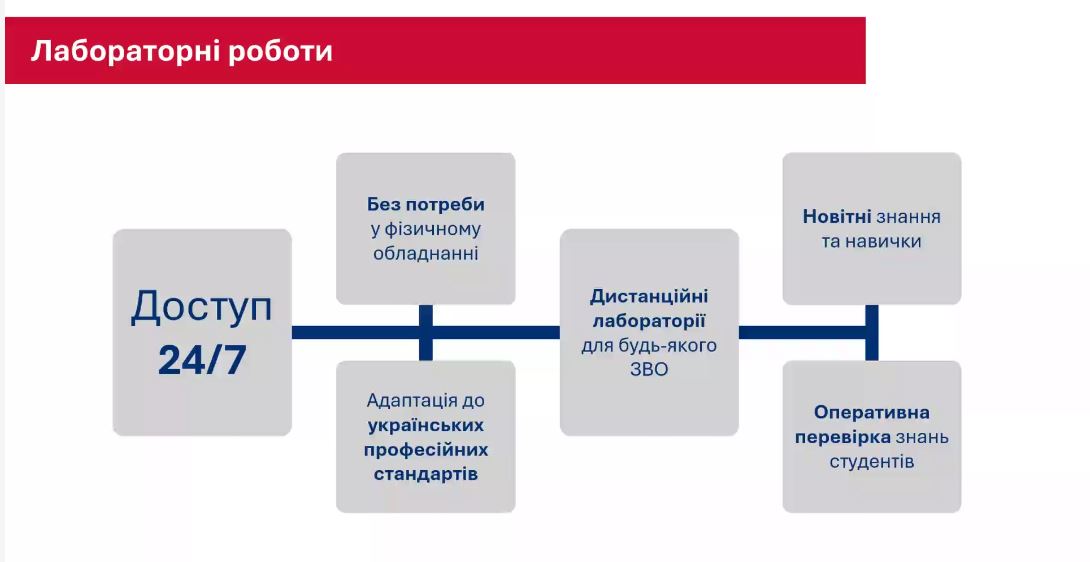 - проводити лабораторні роботи у віртуальному середовищі 24/7;