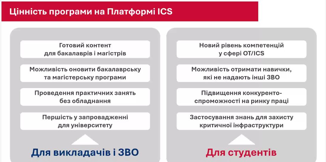 - готувати студентів до викликів реальної кібербезпеки промислових систем;