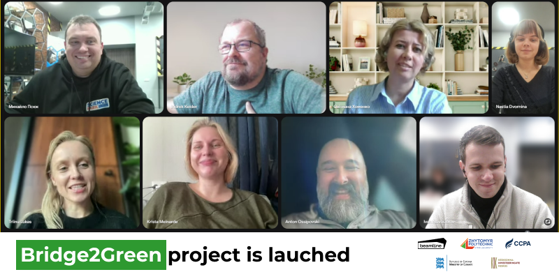 Спільними зусиллями Beamline Accelerator, Державного університету «Житомирська політехніка» та ГО “Центр конверсії та професійної адаптації” ми офіційно розпочинаємо Bridge2Green — транскордонну ініціативу, що поєднує естонські стартапи у сфері зелених технологій з українськими промисловими партнерами.
