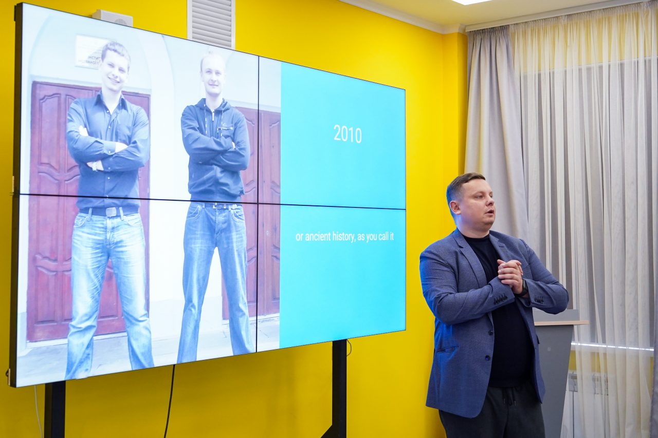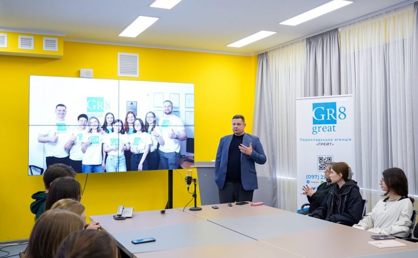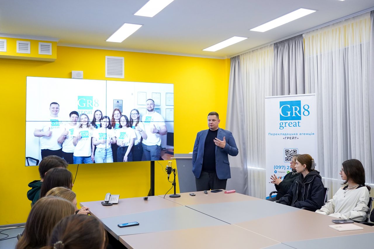Перекладацька агенція «Грейт» займає провідну позицію на ринку надання мовних послуг. Під час лекції пан Олександр поділився історією створення агенції, розповів про шлях до її успіху, розвиток лінгвістичних та інформаційних технологій, а також про особливості роботи перекладача у сфері письмових і усних перекладів.