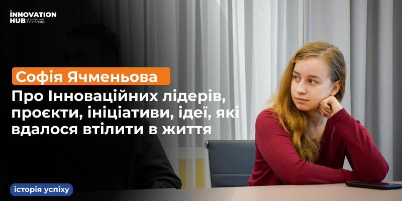 Героїня інтерв’ю — Софія Ячменьова, Інноваційна лідерка. Учасниця АІ хакатону. Учасниця програми від kood/Zhytomyr – освітньої програми для IT-спеціалістів за естонською методикою навчання. Модератор Startup Speaking Club — розмовного клубу для студентів та викладачів університету.