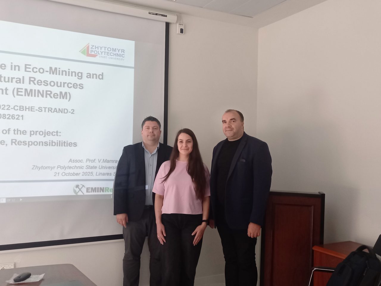 Впродовж 20-24 вересня в рамках реалізації проєкут Еаразмус+ «EMINReM – Магістерська програма з еко-гірництва та інноваційного менеджменту корисних копали» на базі Вищої політехнічної школи м. Ліранарес, Університету м. Хаєн (Іспанія) відбувся об’єднаний захід – 5та Координаційна нарада спільно з Фінальним семінаром. Учасниками зустрічі стали представники університетів консорціуму, члени координаційного комітету проекту з України, Казахстану, Узбекистану, Німеччини, Туреччини, Іспанії. Від Житомирської політехніки участь у зустрічі взяли представники відділу міжнародних зв’язків, викладачі факультету гірничої справи природокористування та будівництва: Мамрай В.В., Кириленко Н.П., Махно А.М..