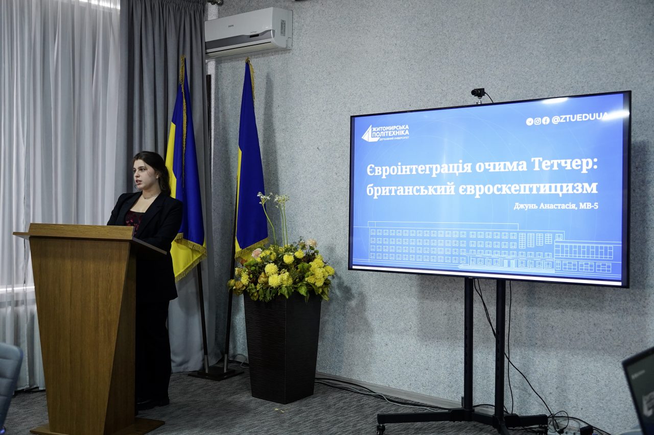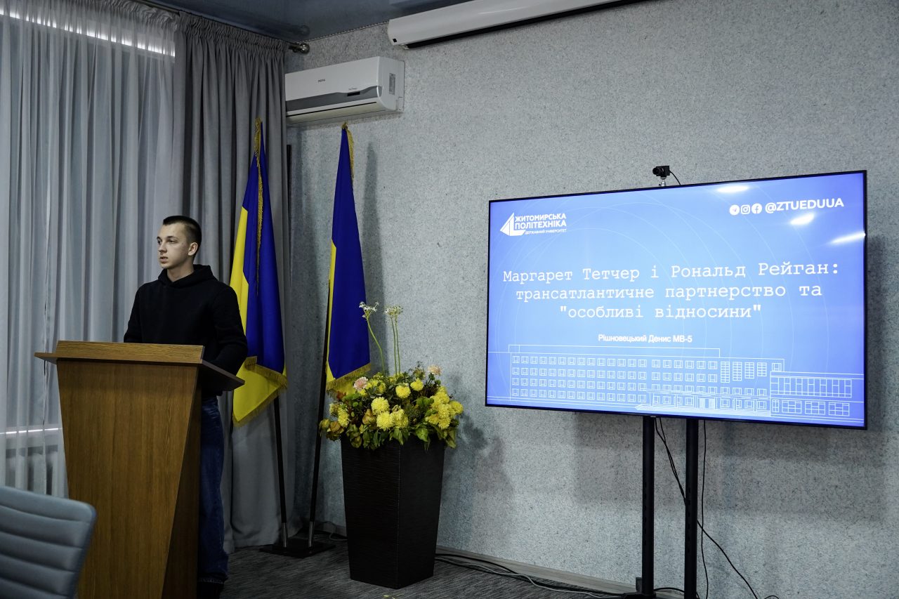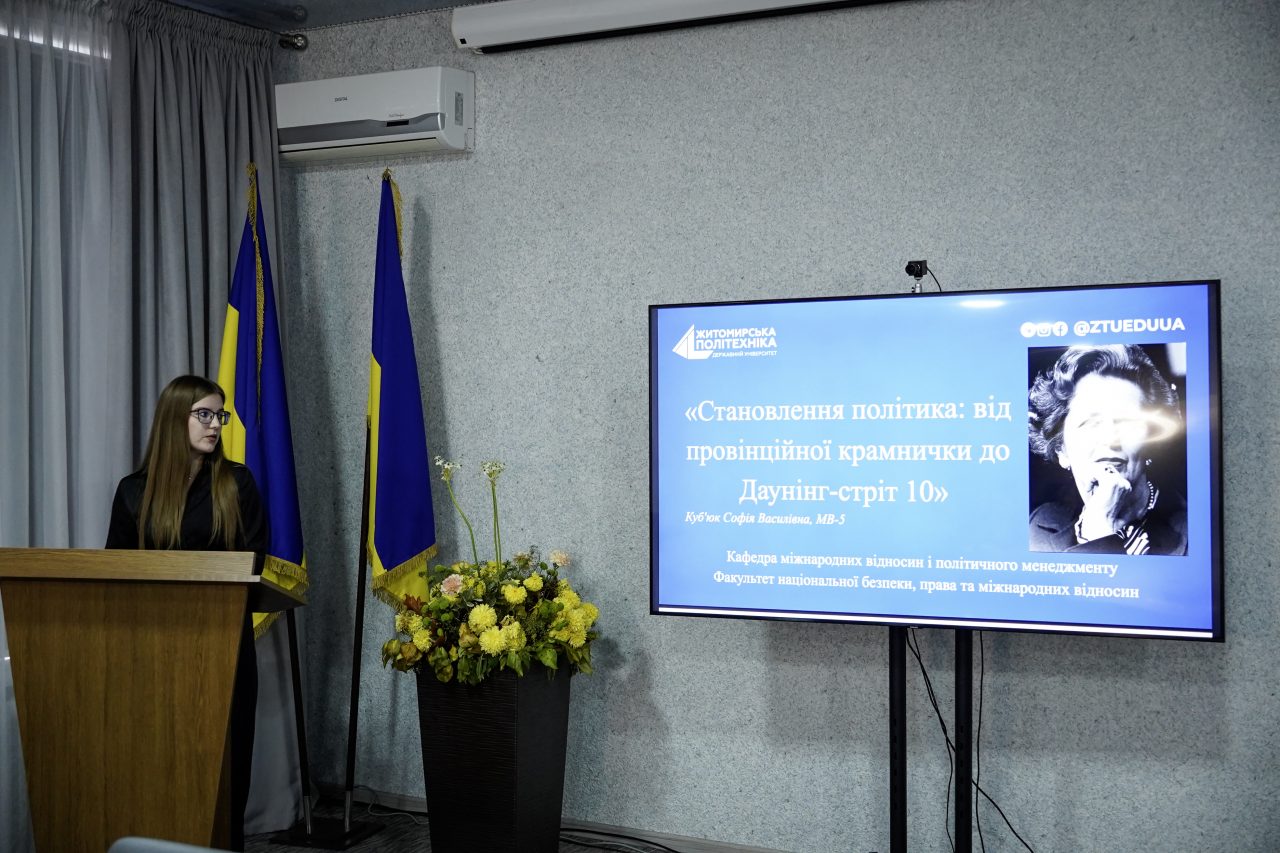 13 жовтня 2025 року в Державному університеті «Житомирська політехніка» на факультеті національної безпеки, права та міжнародних відносин було проведено круглий стіл на тему «Вплив особистості на розвиток системи міжнародних відносин (до 100-річчя дня народження Маргарет Тетчер)».