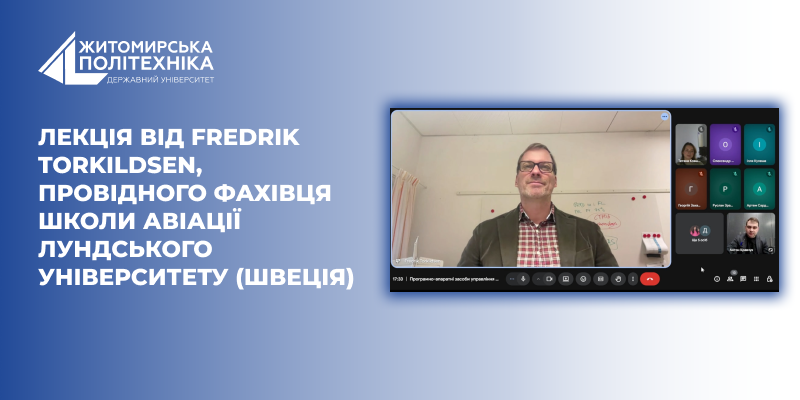 20 жовтня 2025 року в Державному університеті «Житомирська політехніка» відбулася онлайн-лекція «Principles of Flight» від запрошеного спікера Fredrik Torkildsen (Lund University, School of Aviation, Швеція) для студентір ОС «бакалавр» та «магістр» спеціальності «Автоматизація, комп’ютерно-інтегровані технології та робототехніка» та «Агроінженерія».