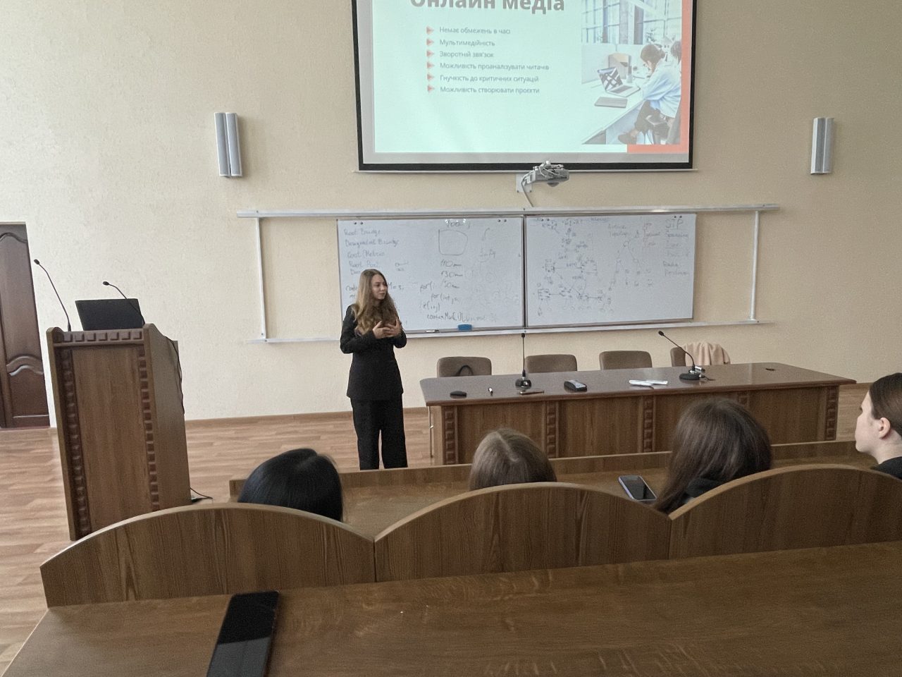 13 жовтня у Житомирській політехніці відбулася зустріч студентів спеціальності С7 «Журналістика» із редакторкою мультимедійного відділу інтернет-видання «Житомир.info» Валерією Володіною. Спікерка поділилася професійними порадами, розповіла про специфіку роботи в електронних медіа та мотивувала студентів до активного розвитку.