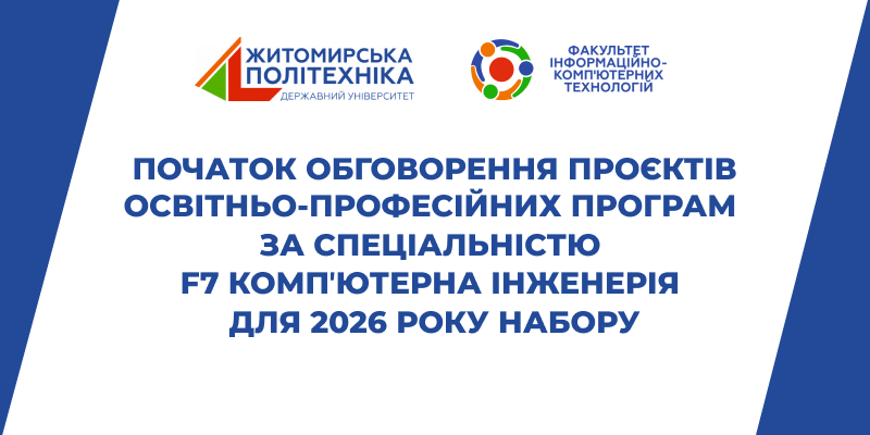 Кафедра комп’ютерної інженерії та кібербезпеки повідомляє про початок громадського обговорення проєктів бакалаврської та магістерської освітньо-професійних програм за спеціальністю F7 Комп’ютерна інженерія для здобувачів освіти 2026 року набору.