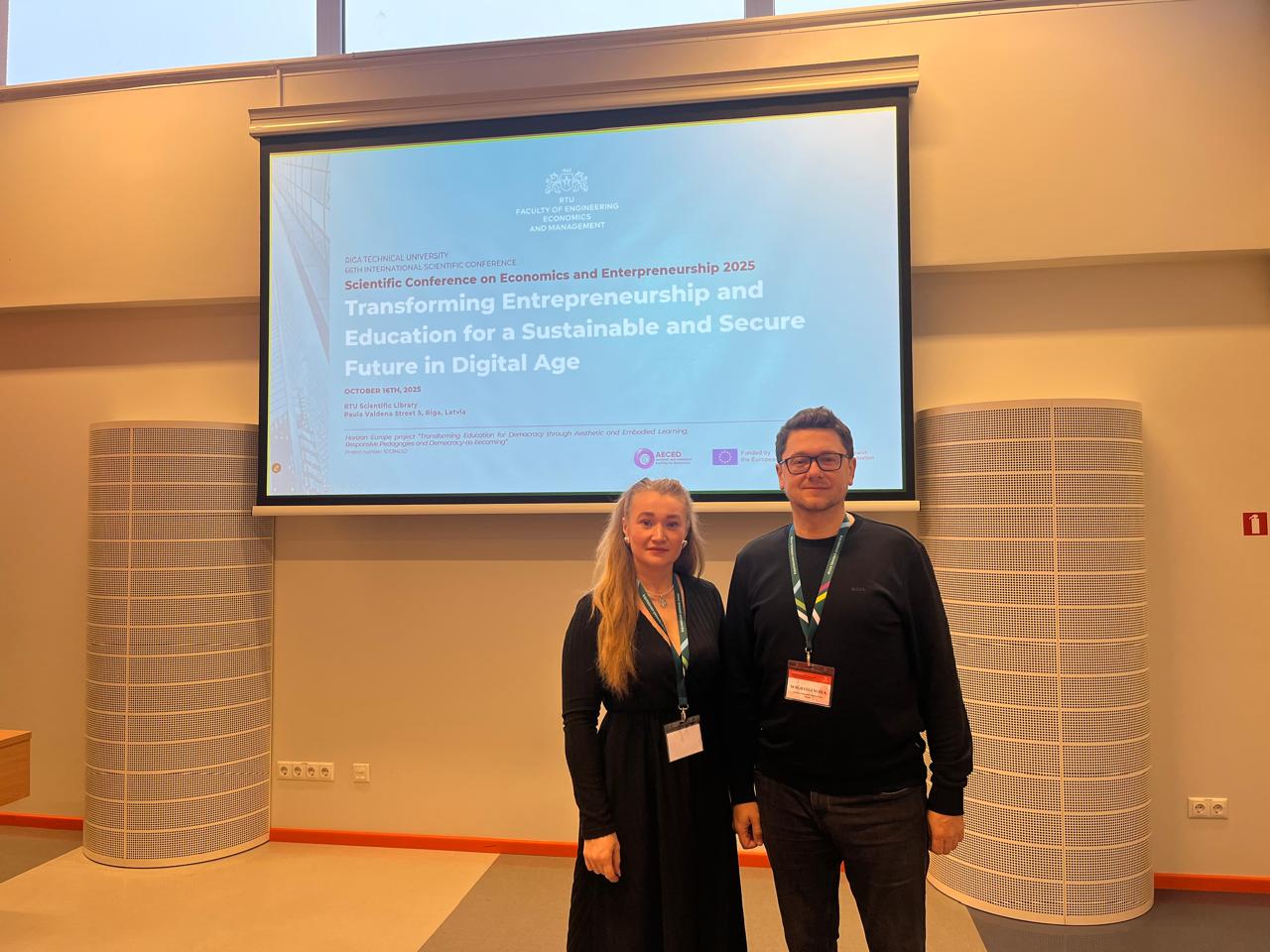 Державний університет «Житомирська політехніка» вже кілька років поспіль плідно та завзято співпрацює з Технічним університетом м. Рига в рамках програми Еразмус+ Міжнародна кредитна мобільність (Erasmus+ International Credit Mobility) за філологічним, економічним та інженерним напрямами.У період з 13 по 17 жовтня 2025 року представники університету – провідний спеціаліст відділу міжнародних зв’язків Анна Полянська та завідувач кафедри інформаційних систем в управлінні та обліку Сергій Легенчук – долучилися до заходів Міжнародного тижня (International Staff Week 2025), організованого економічним факультетом Технічного університету м. Рига (RTU).