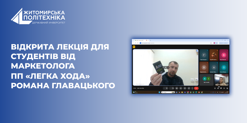 22 листопада 2025 року, у межах навчального процесу з дисциплін «Маркетингові дослідження» та «Маркетингова цінова політика», здобувачі освіти спеціальності 075 «Маркетинг» Державного університету «Житомирська політехніка» мали змогу за допомогою дистанційних технологій зустрітися з маркетологом ПП «Легка хода» Романом Главацьким.