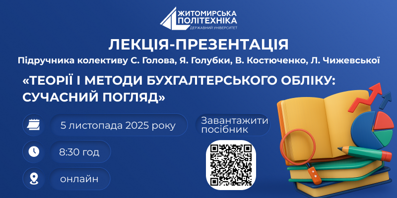Запрошуємо долучитися до лекції-презентації підручника «Теорії і методи бухгалтерського обліку: сучасний погляд» від колективу С.Голова, Я.Голубки, В. Костюченко, Л. Чижевської.