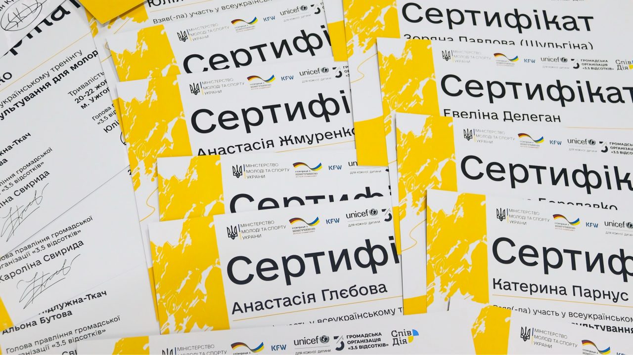 Організаторами тренінгу виступили Міністерство молоді та спорту України спільно з громадською організацією «3.5 відсотків». Захід реалізовано за сприяння Благодійного фонду «СпівДія», ЮНІСЕФ, а також за фінансової підтримки Федерального міністерства економічного співробітництва та розвитку Німеччини (BMZ) через Німецький банк розвитку (KfW).