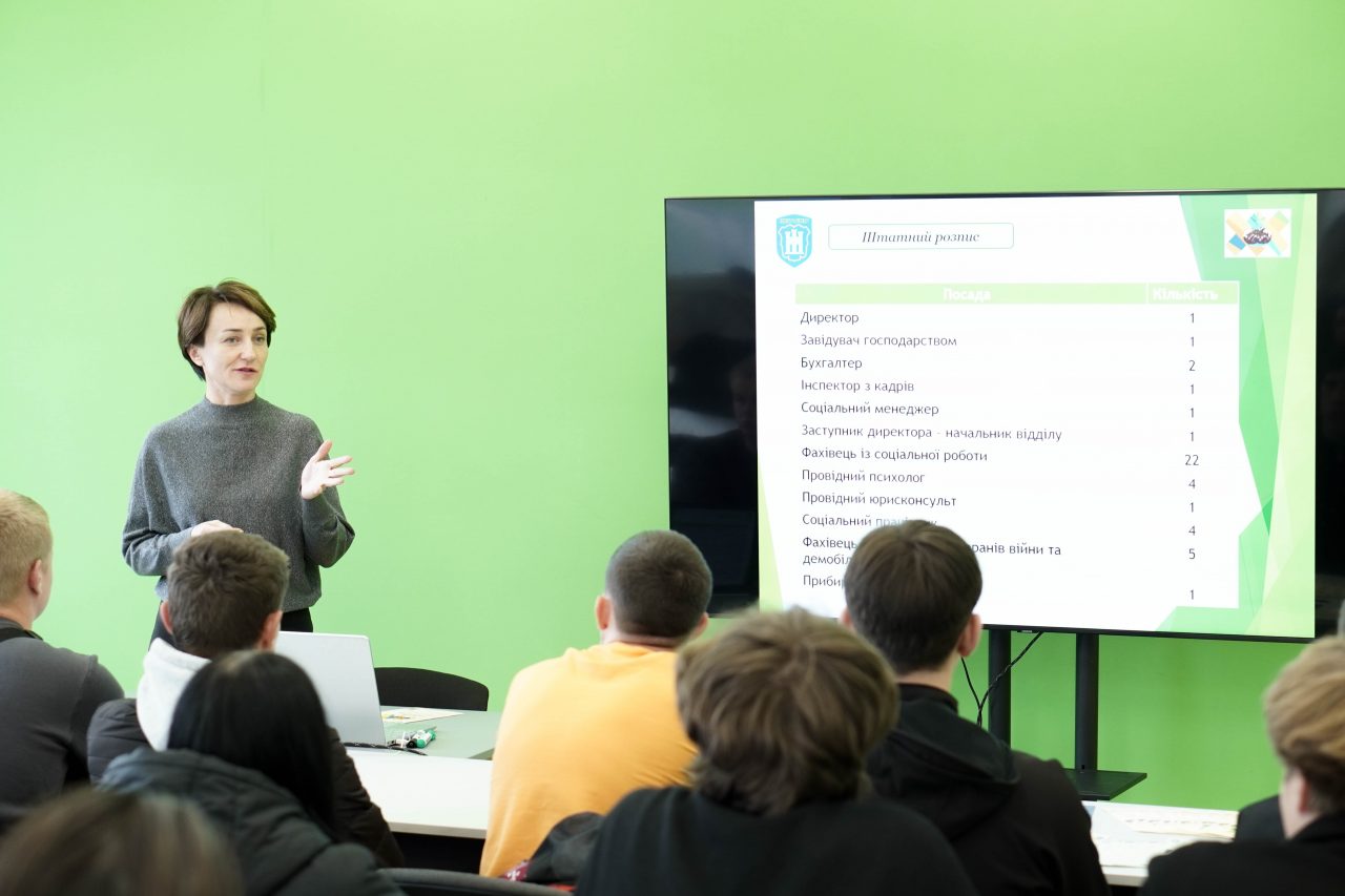 Представляючи Службу підтримки осіб, постраждалих від домашнього насильства або насильства за ознакою статі, студентам розповіли про функціонування мобільної бригади та денного центру з кризовою кімнатою, де жінки з дітьми отримують безпечний тимчасовий прихисток, психологічну підтримку та необхідні соціальні послуги, що є важливим інструментом захисту жінок, які постраждали від домашнього насильства чи перебувають у кризових життєвих обставинах.