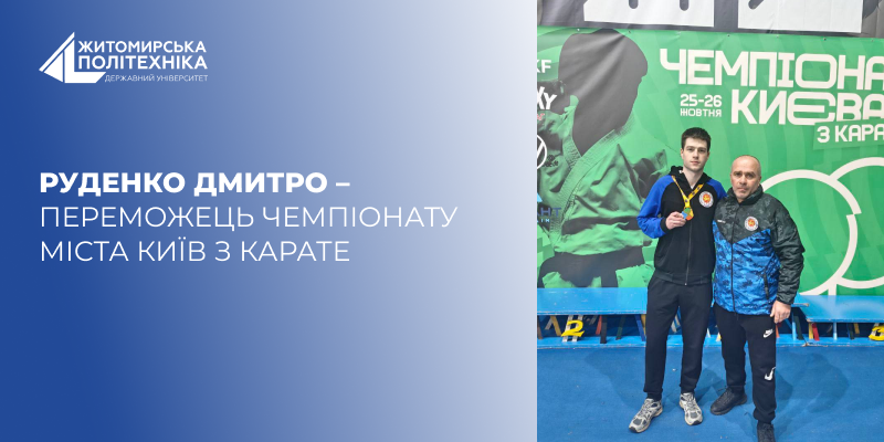 25-26 жовтня в Києві проходив Чемпіонат міста з карате. У турнірі взяв участь студент факультету інформаційно-комп’ютерних технологій Руденко Дмитро. У поєдинках у категорії куміте молодь – 84кг він продемонстрував високий рівень майстерності та спортивної підготовки, здобувши перше місце.