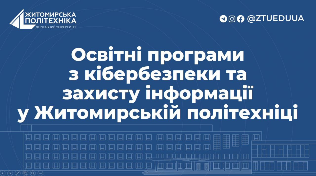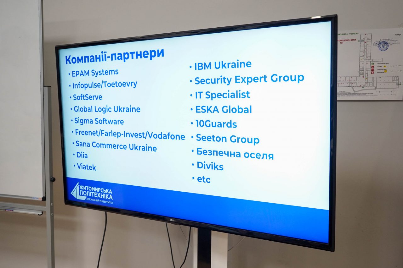 Перший заходом, який було проведено завідувачем кафедри компʼютерної інженерії та кібербезпеки Андрієм Єфіменком стала Презентація бакалаврської та магістерської освітніх програм «Кібербезпека» Державного університету Житомирської політехніки. Під час презентації гостям було представлено особливості університетських освітніх програм, які вирізняють їх серед решти програм українських університетів. Зокрема, описано імплементацію програм професійної сертифікації за спеціальністю, організацію практичної підготовки, взаємодію з ІТ-компаніями. Особливу зацікавленість та жваву дискусію викликало питання формування індивідуальних освітніх траєкторій, а саме питання наповнення переліку вибіркових навчальних дисциплін та процедури їх обрання. Студенти мали можливість порівняти систему вибору свого університету і систему вибору Житомирської політехніки та визначити переваги і недоліки обох систем.