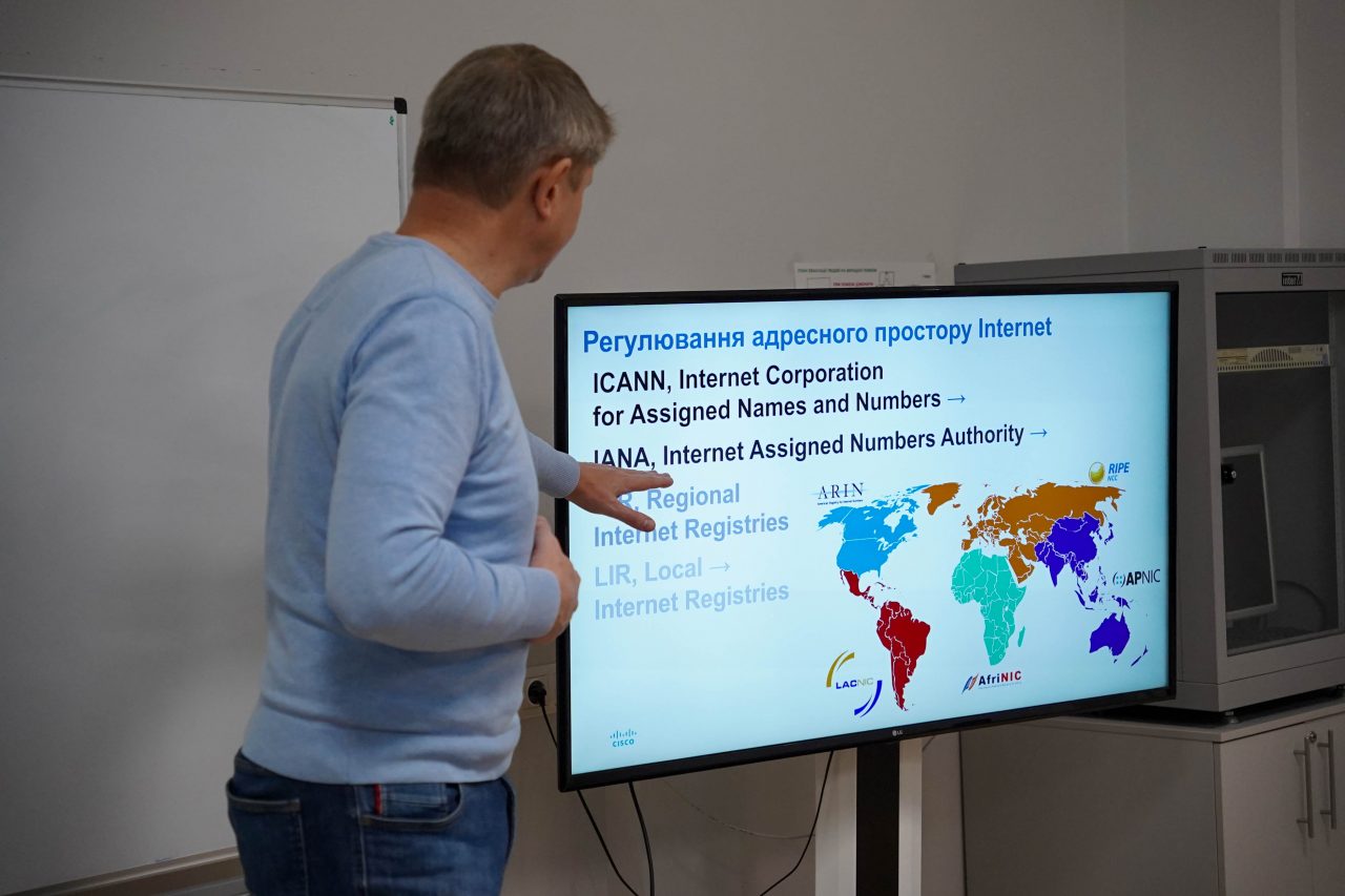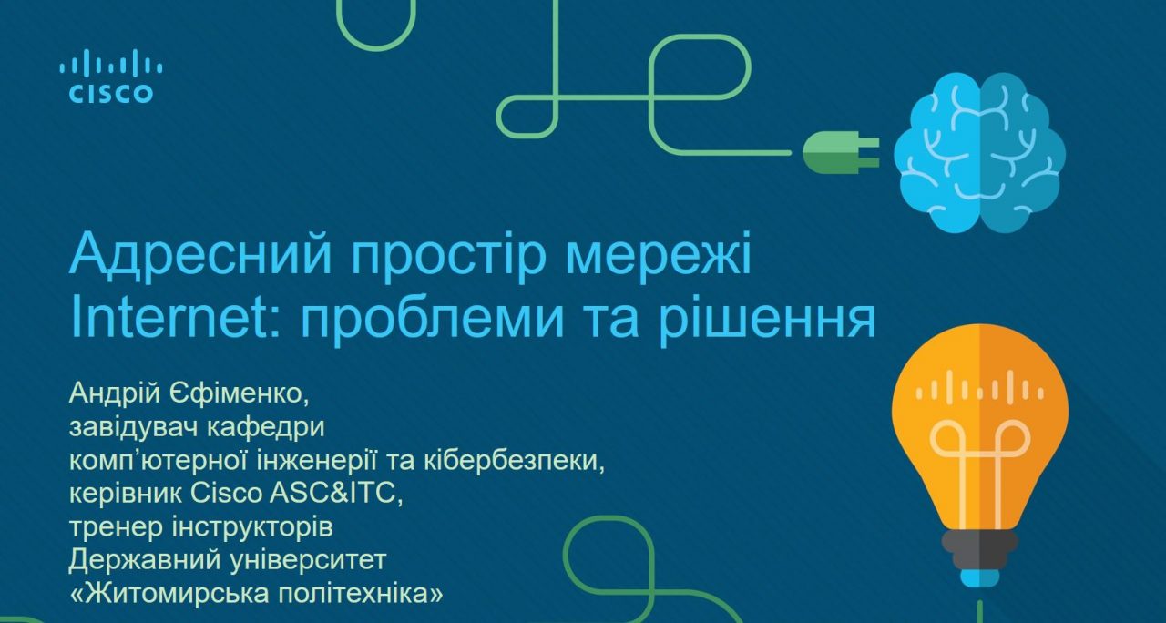 Наступним заходом стала Проблемна лекція «Адресний простір Internet: проблеми та рішення». Її провів завідувач кафедри компʼютерної інженерії та кібербезпеки Андрій Єфіменко. Протягом лекції були розглянуті питання використання адресного простору мережі Internet, проблеми дефіциту адрес та шляхи їх вирішення, зокрема, застосування NAT та IPv6. Особливістю лекції був розгляд практичних аспектів застосування технології NAT на обладнанні провідних виробників мережних пристроїв.