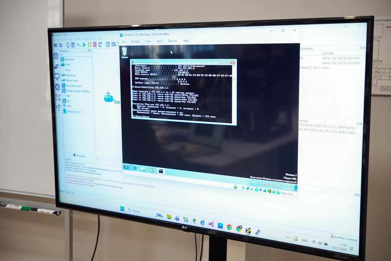 Завершальним кафедральним заходом став Workshop “Network&Security Devices – Reality vs Emulation”, який у лабораторії кібербезпеки та захисту інформації провели старші викладачі кафедри компʼютерної інженерії та кібербезпеки Ольга Дячук та Марія Колощук. На ньому здобувачі мали можливість ознайомитися з мережним і кібербезпековим обладнанням та програмними середовищами, які використовуються в освітньому процесі Житомирської політехніки для підготовки фахівців за спеціальністю Кібербезпека та захист інформації. Здобувачі також практично попрацювали з базовими налаштуваннями мережних пристроїв та реалізували сценарії їх захисту, зокрема, захищених підключень адміністраторів.