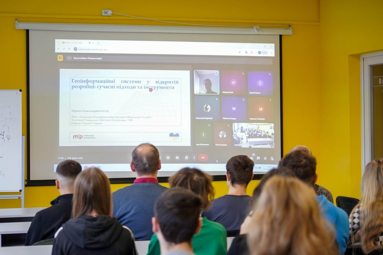Лекторка – викладач Метінвест Політехніки доктор філософії (PhD) Батур Марина Олександрівна – познайомила студентів спеціальностей G16 (184) «Гірництво» , G18 (193) «Геодезія та землеустрій» та G19 «Будівництво та цивільна інженерія» (192) з основами геоматики та особливостями використання геоінформаційних систем на виробництві.