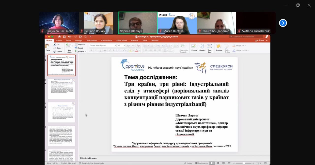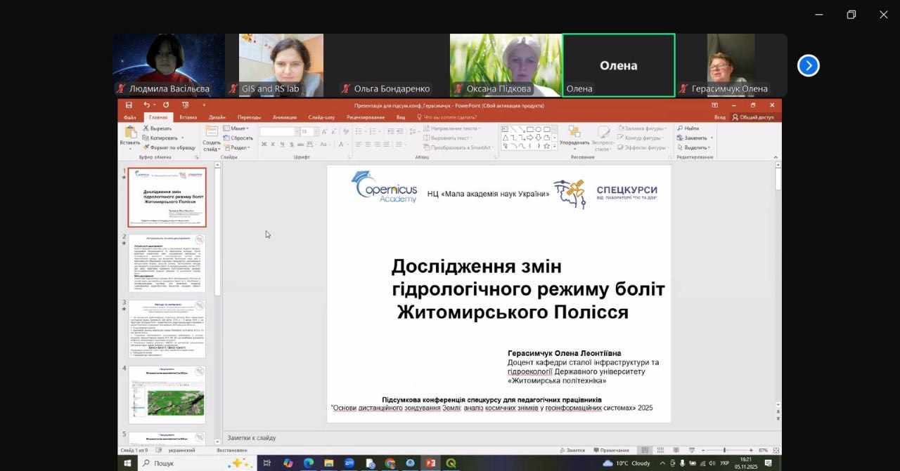 З 27 жовтня по 5 листопада 2025 року викладачі кафедри сталої інфраструктури та гідроекології пройшли навчання на спецкурсі «Основи дистанційного зондування Землі: аналіз космічних знімків в геоінформаційних системах», організоване лабораторією ГІС та ДЗЗ Наукового центру МАНУ. Під час опанування курсу учасники ознайомилися з методами обробки та інтерпретації супутникових знімків, основами роботи в ГІС-середовищі, а також застосуванням сучасних цифрових інструментів для дослідження природних і антропогенних процесів на Землі.
