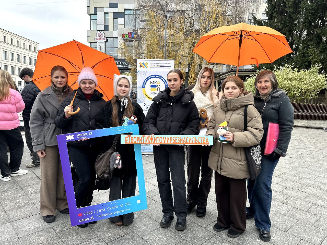 Центр гендерної освіти факультету національної безпеки, права та міжнародних відносин Житомирської політехніки доєднався до акції «ТвориТи Житомир без насильства», яка стартувала на вулиці Михайлівській у межах міжнародної кампанії «16 днів проти насильства»