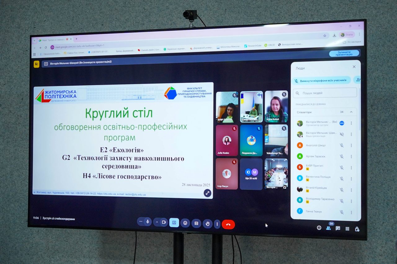 28 листопада 2025 року в форматі круглого столу відбулося публічне обговорення освітніх програм кафедри екології та природоохоронних технологій. На кафедрі реалізується підготовка здобувачів за трьома спеціальностями