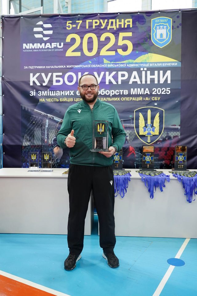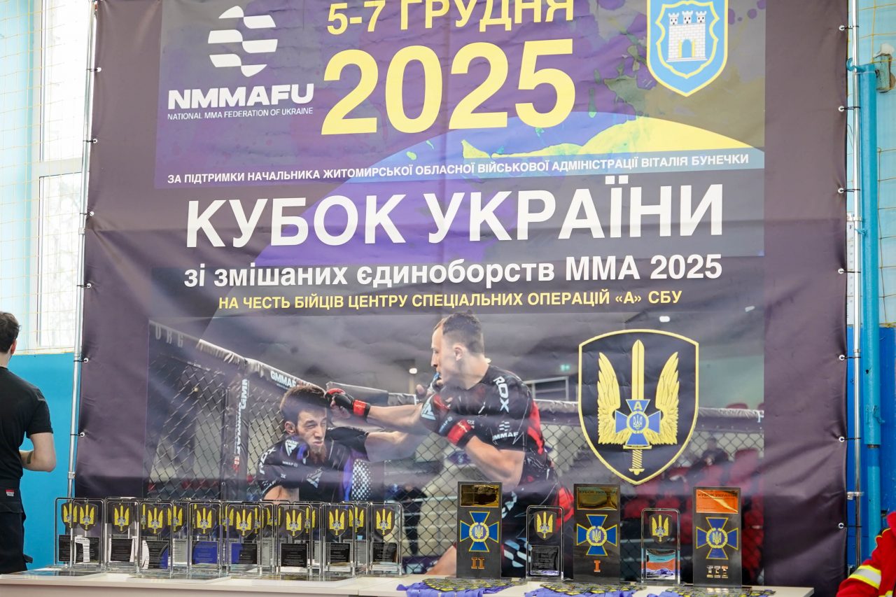 Кубок України зі змішаних єдиноборств ММА на базі Державного університету «Житомирська політехніка» став головною спортивною подією, адже 5-7 грудня 2025 року Житомир приймав найсильніших бійців країни та перетворився на справжню арену сили, майстерності й незламного українського духу.Турнір був присвячений воїнам Центру спеціальних операцій «А» СБУ – тим, хто щоденно стоїть на захисті держави і надихає своїм прикладом відваги та відданості Україні.