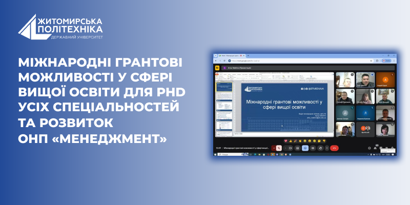 28 листопада 2025 року здобувачі вищої освіти ступеня «доктор філософії» всіх спеціальностей Державного університету «Житомирська політехніка» взяли участь у лекції в межах навчальної дисципліни «Менеджмент і презентація наукових та освітніх проєктів» (Тема 5. Менеджмент міжнародних наукових проєктів) (лектор, д.е.н., проф. Галина ТАРАСЮК).