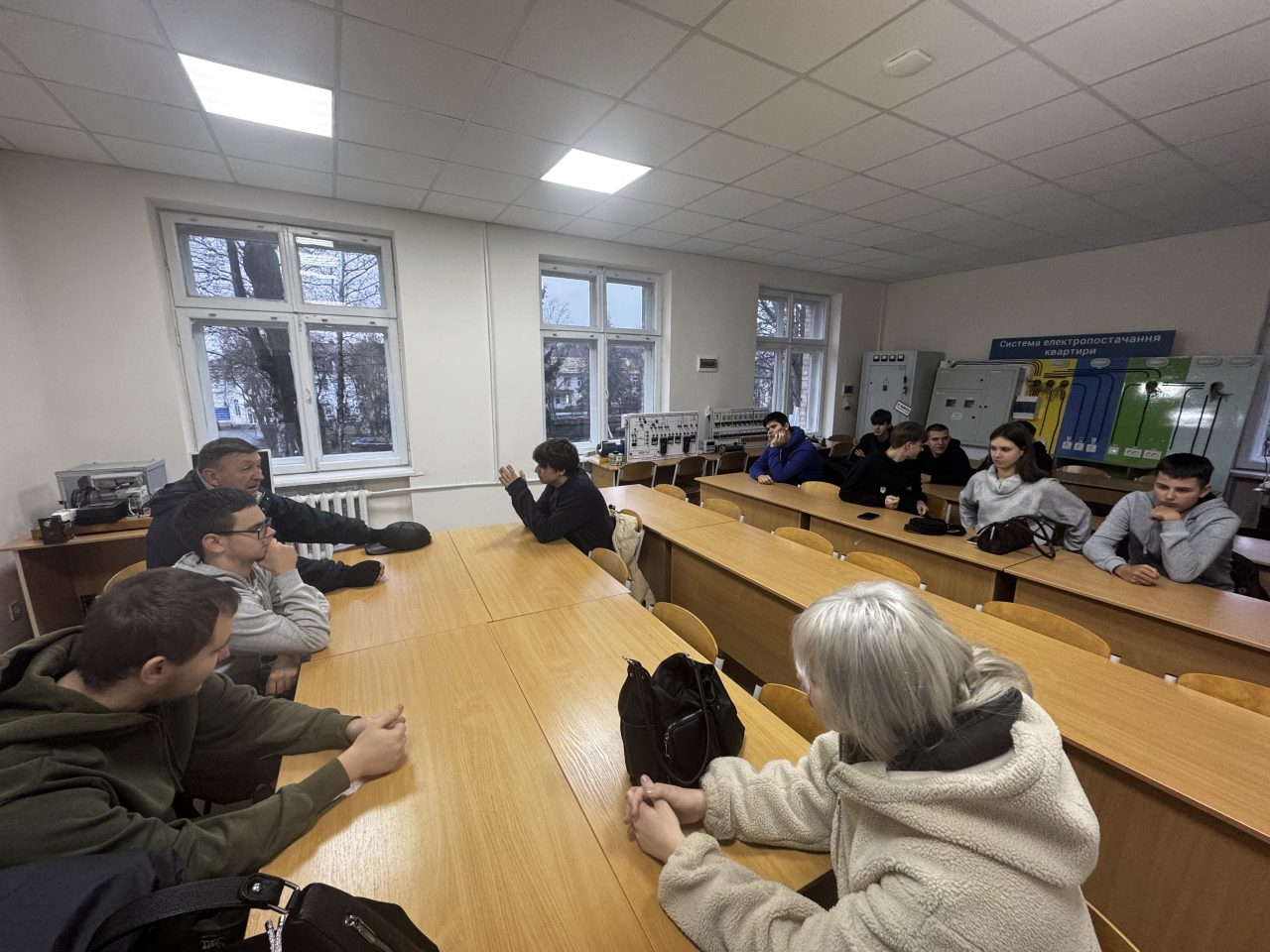 Виїзне заняття проходило на базі Навчально-наукового інституту енергетики, автоматики та водного господарства та кафедри геології та гідрології. Під час візиту здобувачі освіти ознайомилися з основними напрямами роботи кафедри, що поєднують геологічні та гідрологічні дослідження. Студенти мали можливість обговорити з викладачами сучасні методи геологічних і гідрогеологічних досліджень, побачити спеціалізовані прилади для аналізу порід, мінералів та параметрів водного середовища.