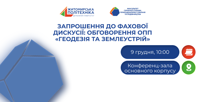 Кафедра маркшейдерії запрошує стейкхолдерів, викладачів та студентську спільноту взяти участь у робочій зустрічі, спрямованій на громадське обговорення проєкту освітньо-професійної програми «Геодезія та землеустрій».