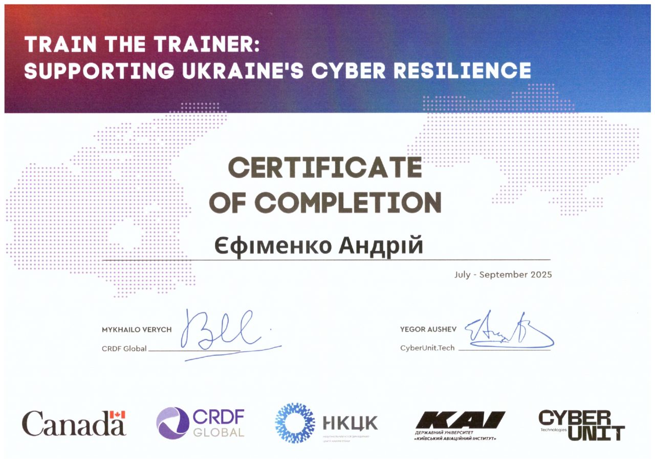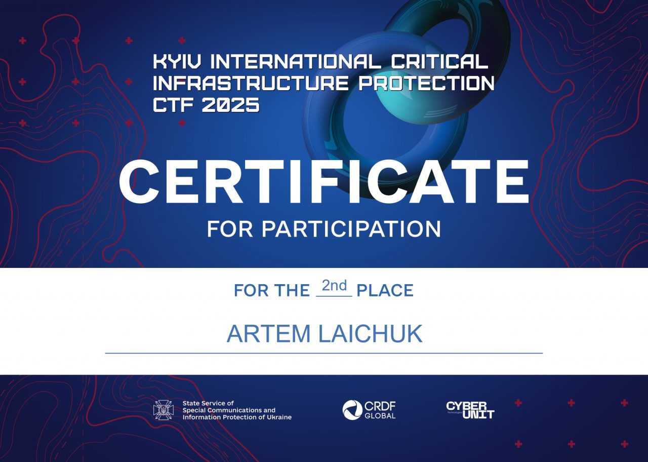 - Critical Infrastructure Protection CTF – 2 місце серед 10 онлайн-команд.