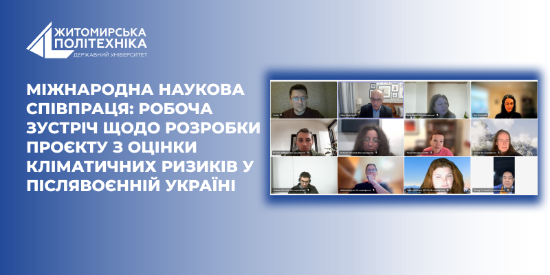 09 січня 2026 р. відбулася робоча зустріч між представниками Житомирської політехніки, Харківського національного економічного університету імені Семена Кузнеця та Університету Ноттінгема (Велика Британія). Основною метою зустрічі стало обговорення спільного наукового проєкту під назвою «Оцінка кліматичних ризиків та пом’якшення їх наслідків у післявоєнній Україні: мультидисциплінарна основа для стійкості».