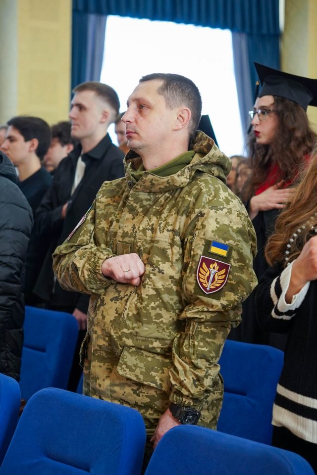 Особливі слова вдячності були для випускників-магістрів, які є представниками Сил оборони України та поєднали навчання з виконанням військового обов’язку. Ваш приклад є свідченням справжнього служіння державі, громадянської зрілості та відданості цінностям українського суспільства.