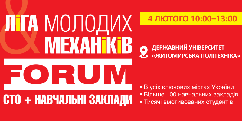 Приєднуйтесь до ЛіГА МОЛОДИХ МЕХАНіКіВ & FORUM CTO у Житомирі – станьте частиною спільноти професіоналів, що формують майбутнє автомобільної індустрії!