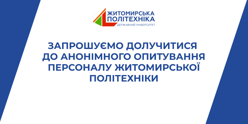 З метою поліпшення організації освітньої, наукової діяльності та інших процесів у Державному університеті «Житомирська політехніка» відповідно до наказу в.о. ректора від 09.02.2026 р. № 42/агп у період з 10 по 20 лютого 2026 року проводиться анонімне анкетування персоналу.