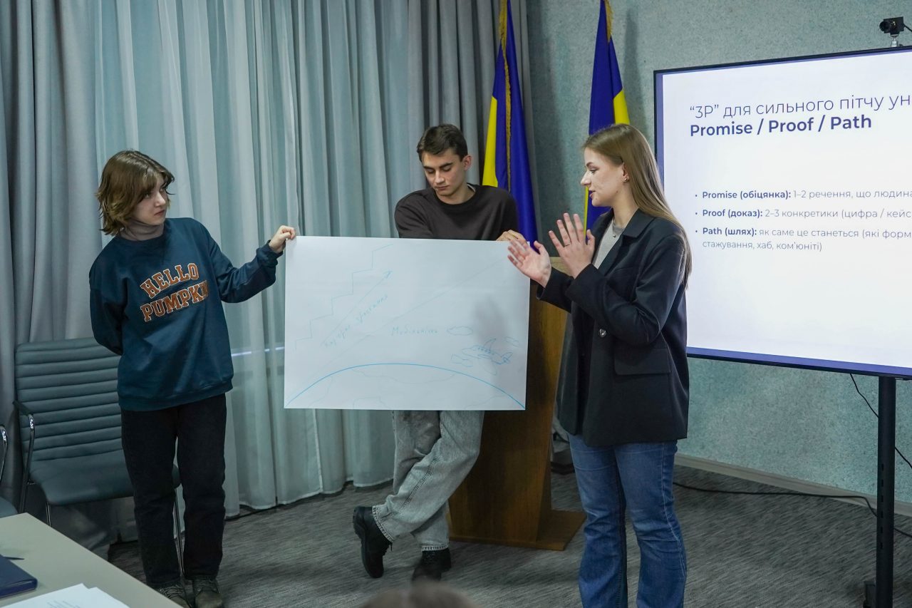 Студенти освоювали мистецтво ідеального пітчу «Продай університет за 1 хвилину», створювали візуальні проєкти та вчилися генерувати крутий контент для соцмереж.