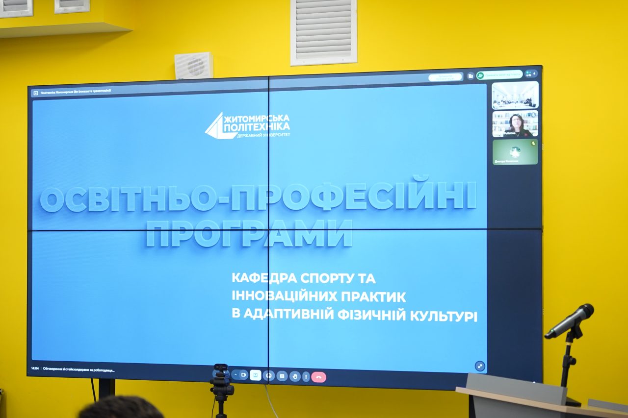 У Державному університеті «Житомирська політехніка» відбулося розширене обговорення освітньо-професійних програм спеціальності А7 «Фізична культура і спорт» за участю представників академічної спільноти, органів державної влади та місцевого самоврядування, керівників спортивних закладів, федерацій, громадських організацій, фахівців з адаптивного спорту та ветеранської політики, а також відомих спортсменів.