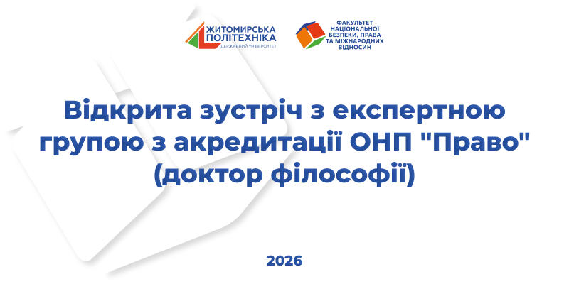 У зв’язку з проведенням акредитаційної експертизи освітньо-наукової програми «Право» третього (освітньо-наукового) рівня вищої освіти 24 лютого 2026 року о 16:00 відбудеться відкрита зустріч із експертною групою Національного агентства із забезпечення якості вищої освіти.