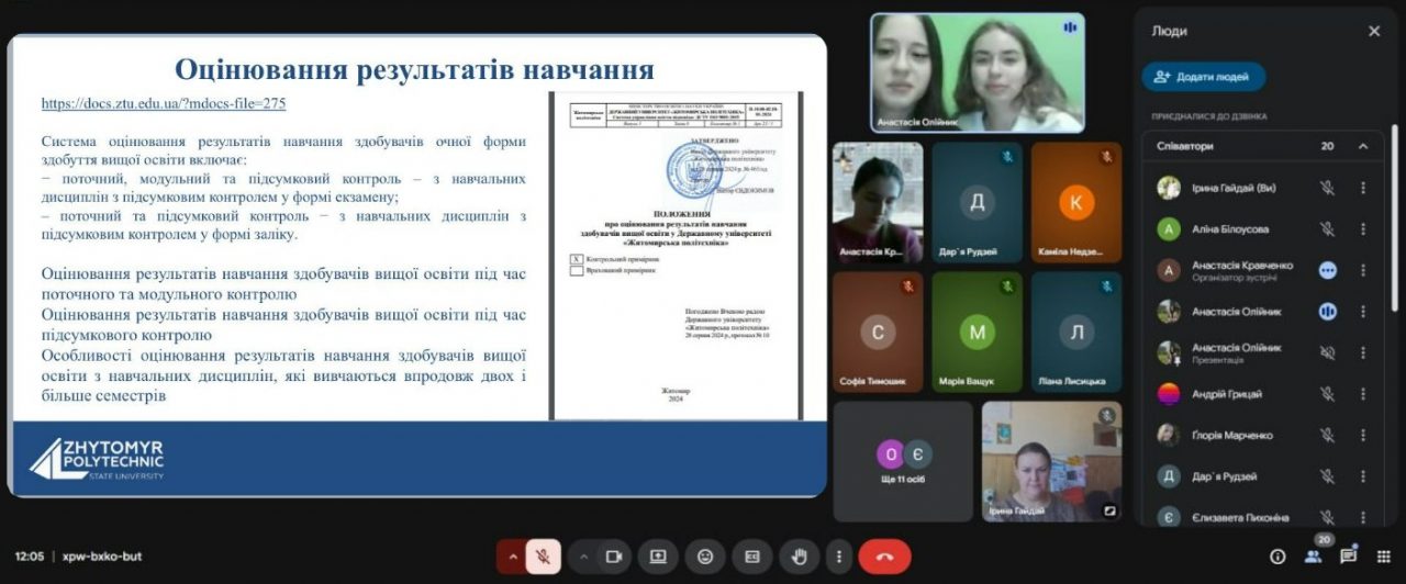 Здобувачі мали можливість дослідити сторінку університетського сайту з документами, які регулюють освітній процес. На завершення зустрічей здобувачі проходили запропоновані гарантами короткі опитування щодо навчання на освітній програмі, ставили свої питання та обговорювали поточні справи.