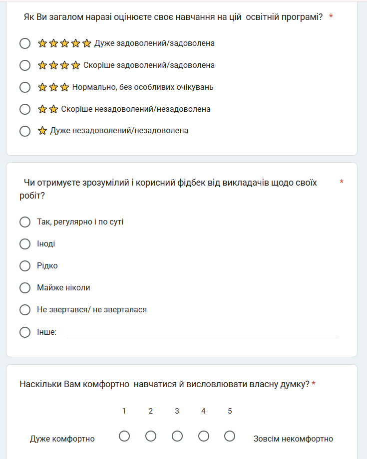 Особливу увагу здобувачів звернули на сторінки веб-сайту університету, що містять інформацію, необхідну для реалізації освітнього процесу, як то «Вибіркові дисципліни», «Практична підготовка», «Академічна мобільність», «Неформальна освіта», «Соціально-правова підтримка».