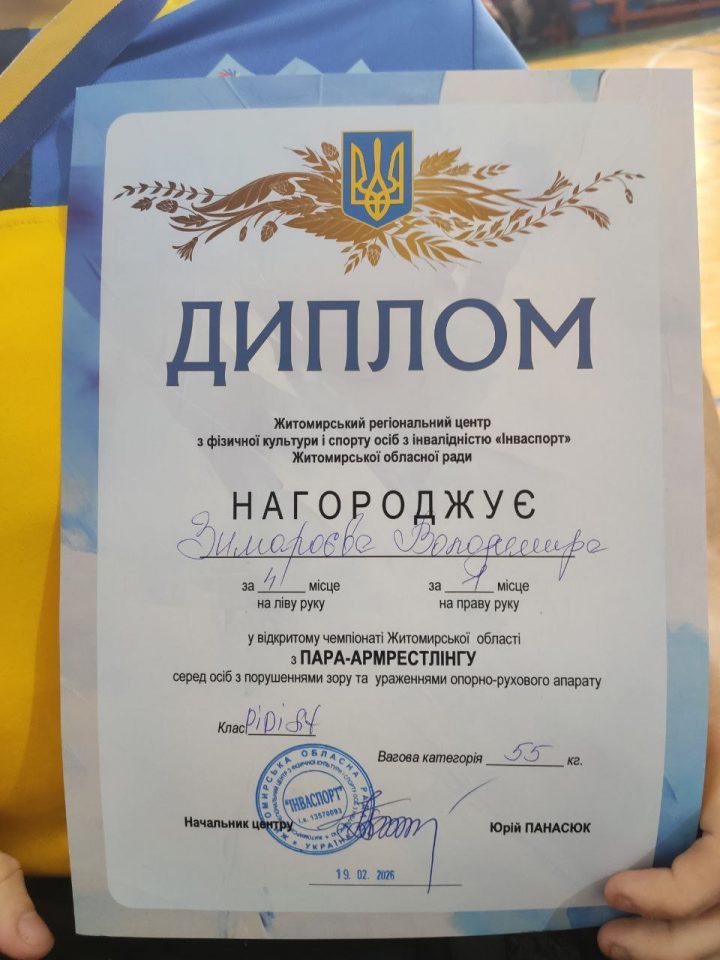 Окремо слід відзначити результативність виступів у складі збірних команд: зокрема, команда зі Звягеля, до якої долучився Володимир, виборола загалом 33 нагороди. Завдяки високим показникам у рейтингу області вони здобули право на участь у Чемпіонаті України з пара-армрестлінгу, який відбудеться у березні 2026 року.