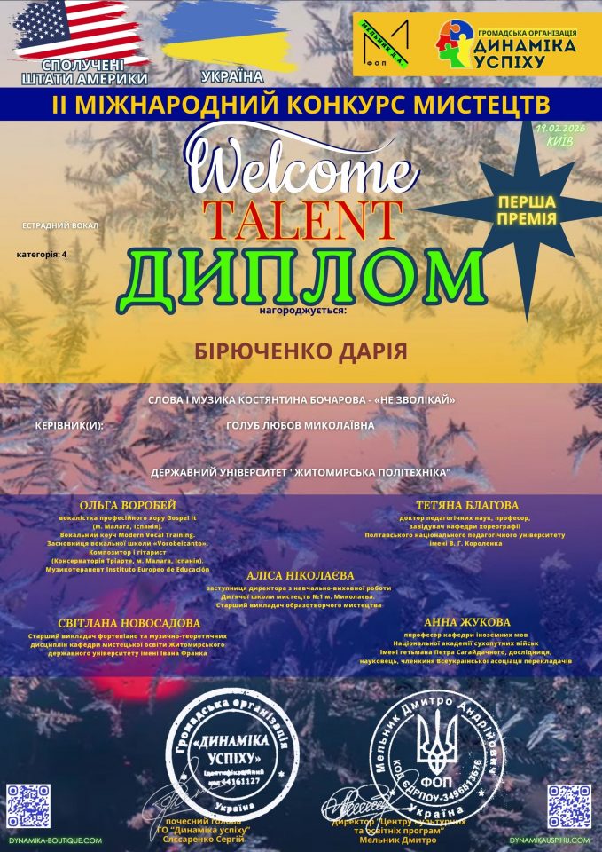 Конкурс відбувся 19.02.2026 р. за ініціативи ГО «Динаміка успіху» і став справжньою платформою для відкриття нових імен, нових голосів і нових мистецьких історій.