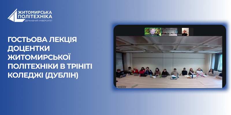 12 березня відбулася гостьова лекція завідувачки кафедри теоретичної та прикладної лінгвістики, к.ф.н, доц. Євгенії Канчури перед магістрантами філології факультету англістики Трініті Коледжа (Дублін, Ірландія).Магістри, які спеціалізуються на дослідженні дитячої та сучасної літератури, прослухали лекцію на тему «Вербалізація травми в літературі фентезі» від співголови Центра з дослідження літератури фентезі при Інституті літератури ім. Тараса Шевченка НАН України.