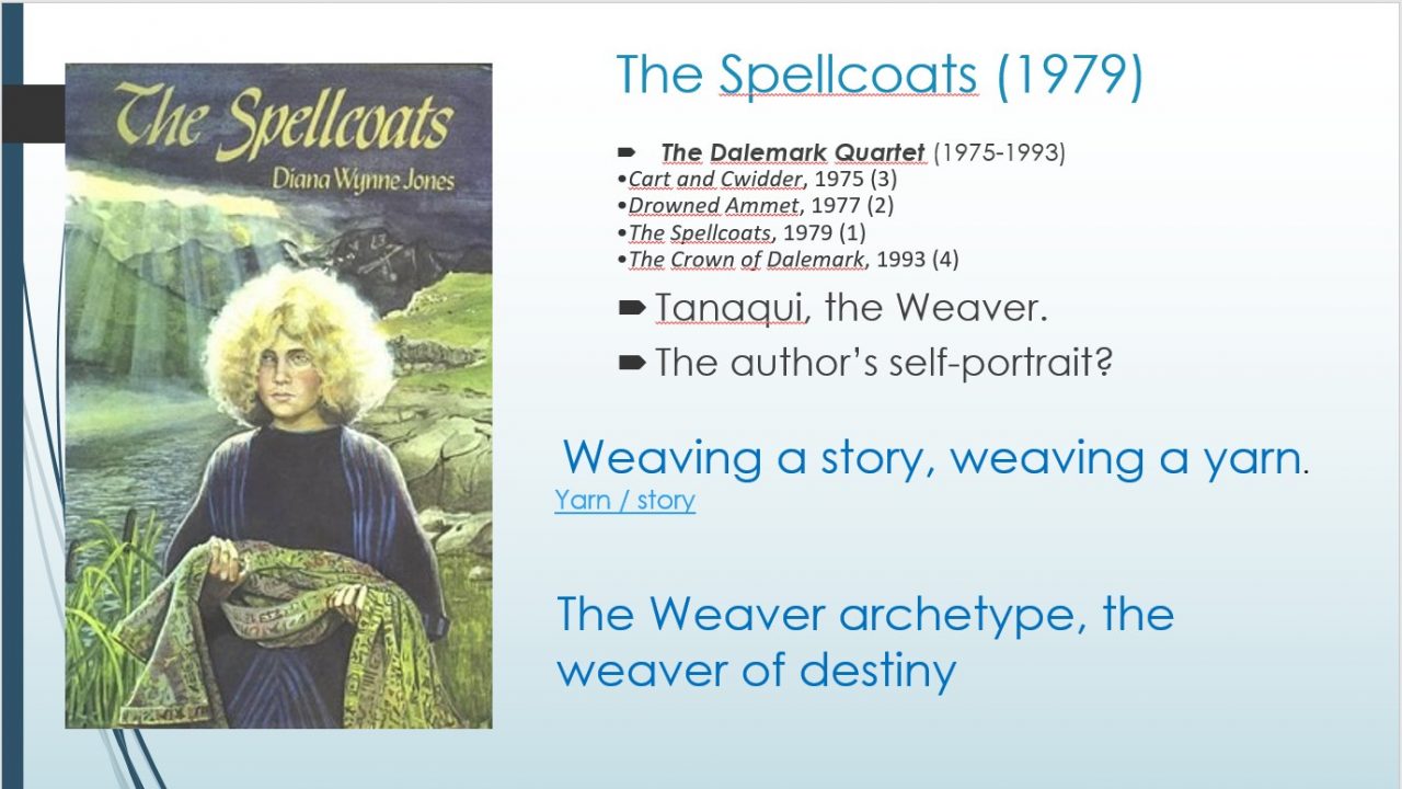 Євгенія Канчура детально проаналізувала особливості відтворення наративного процесінгу в романі Діани Вінн Джонс «Чарівні шати» (Spellcoats). Лекції передувала інформація про діяльність ЦДЛФ від голови Центру, доктора філологічних наук, провідного наукового співробітника відділу компаративістики Інституту літератури, Тетяни Рязанцевої, та плідна дискусія щодо проблем дослідження метажанру фентезі.