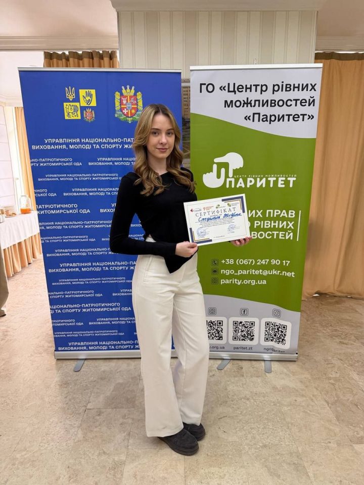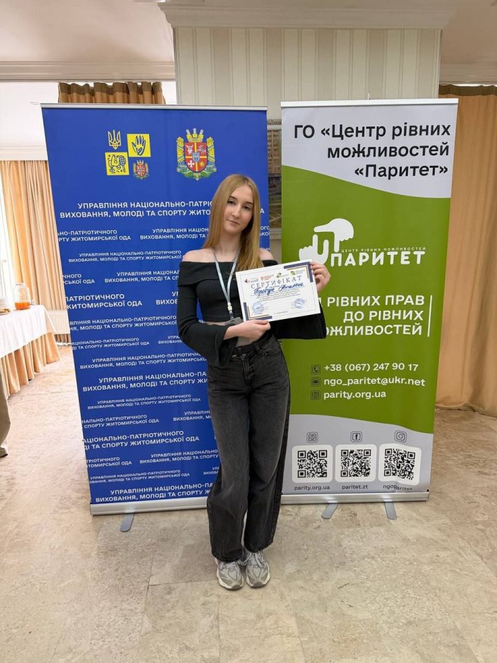 Навчальна програма «Школа лідерства та адвокації» відбулася в межах проєкту «Майстерня адвокації молодих лідерок Житомирщини», що реалізовує ГО «Центр рівних можливостей “Паритет”» у співпраці з Управлінням національно-патріотичного виховання, молоді та спорту Житомирської ОДА за фінансової підтримки Українського жіночого фонду та Уряду Канади.