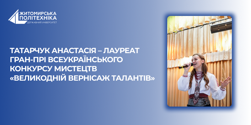 Талановита студентка факультету бізнесу та сфери обслуговування, спеціальності «Фінанси, банківська справа, страхування та фондовий ринок», Анастасія Татарчук, солістка вокального колективу «Акорд» (керівник Голуб Л. М.) Центру культури студентської молоді, гідно представила наш університет на конкурсі.