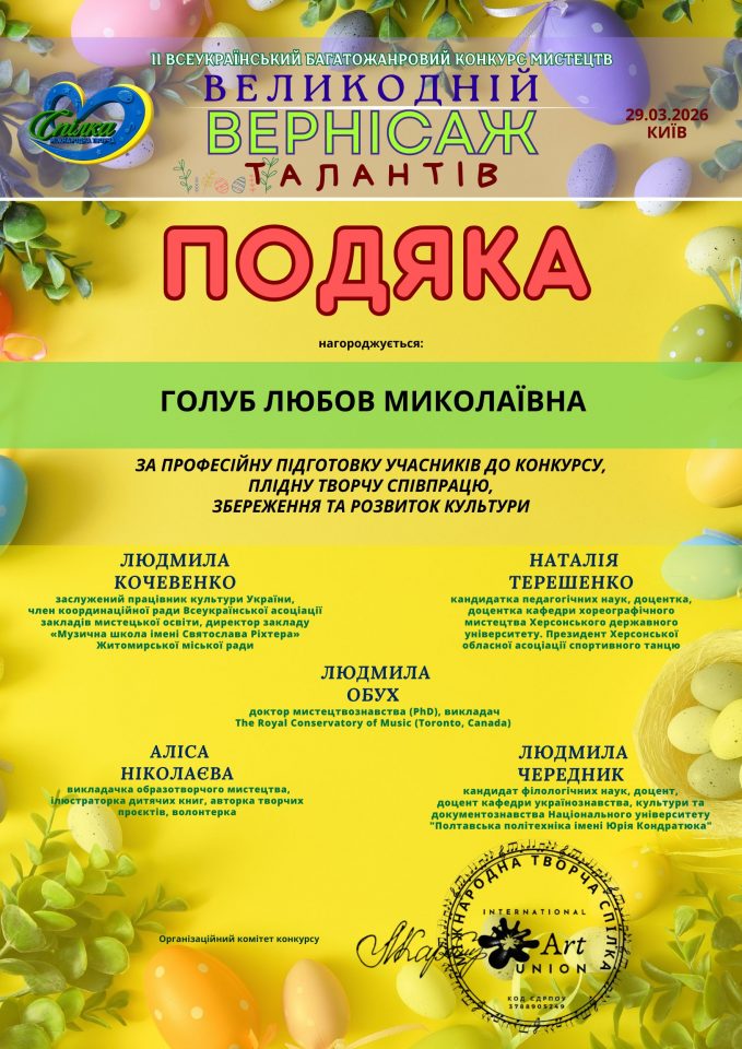 Під таким гаслом 29 березня 2026 року в місті Києві відбувся ІІ Всеукраїнський багатожанровий конкурс мистецтв «Великодній вернісаж талантів».