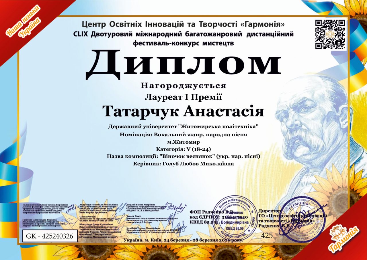 Житомирську політехніку на конкурсі гідно представила Татарчук
