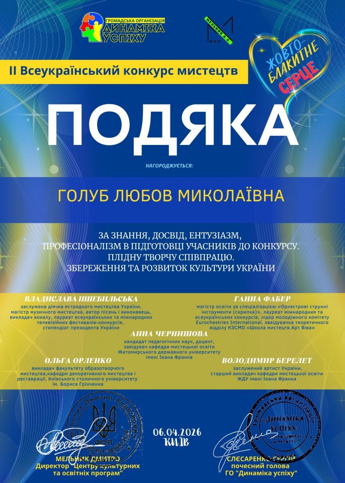Є серце, яке б’ється в ритмі творчості… Є талант, який вартий того, щоб його побачили й почули. Саме для цього створено ІІ Всеукраїнський конкурс мистецтв «Жовто – блакитне серце» – це простір, де мистецтво об’єднує, надихає та відкриває нові можливості.